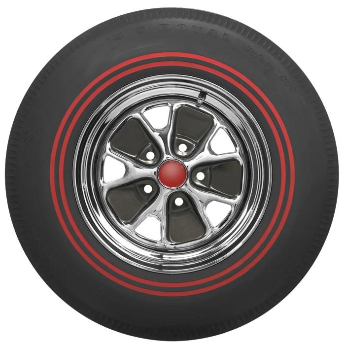 This product features a genuine redline sidewall style, sometimes known as a red stripe, due to the thin 3/8-inch strip rubber. This means that the red rubber is added directly to the tire sidewall during initial construction of the carcass, resulting in a truly integrated, high-quality product after vulcanization. Redline tires hit the American automobile market in 1964 with the introduction of the Pontiac GTO and remained a popular muscle car tire until around 1970. Dual redline tires (two red stripes) were an option on Ford Mustangs, and are now reproduced in original bias ply, bias look radial as well as radial construction. Choose the redline that best fits your application.