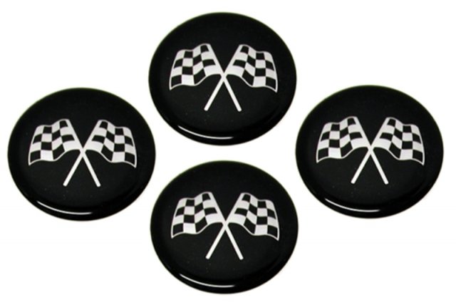 Corvette Wheel Spinner Emblem Set, With Crossed-Flags Design, 1-3/4", Black, 1976-1987