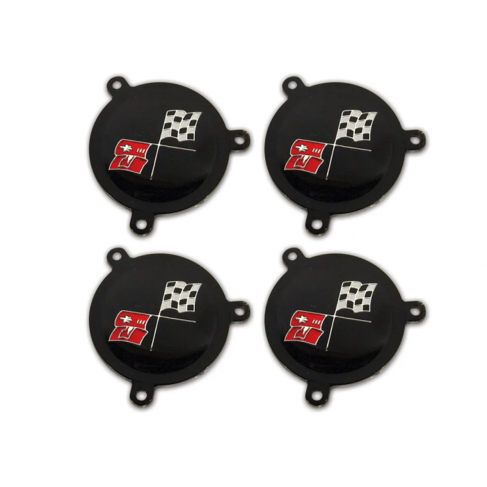 Corvette Hubcap Spinner Emblms, with Blk Upr Left, 1965-1966