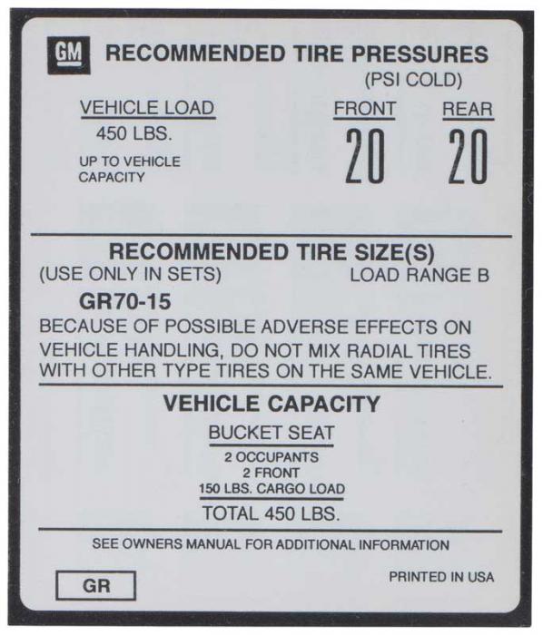 Until January 1973 the tire pressure deal is located on the rear of the drivers door.
