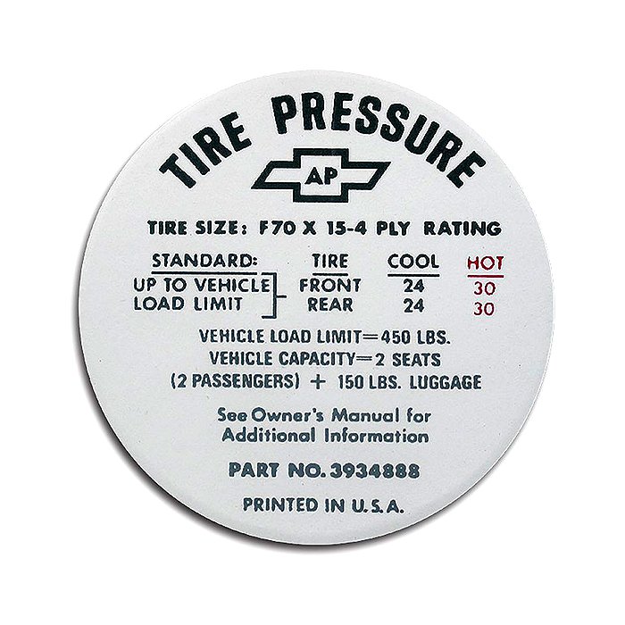 Corvette Decal, Tire Pressure-Glovebox, 1968-1972